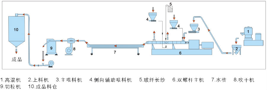 由于PC是不可生物降解的,回收是最好的,也是唯一的長(zhǎng)期解決方案。由于PC是一種較強(qiáng)的工程塑料,其大部分產(chǎn)品都是通過成型工藝制造的,所以PC在回收前需要進(jìn)行適當(dāng)?shù)姆鬯?。傳統(tǒng)上采用單螺桿造粒機(jī) (YD系列) 或雙階單螺桿造粒機(jī) (SD系列) 完成回收,并且配套采用水冷拉條造粒方式。